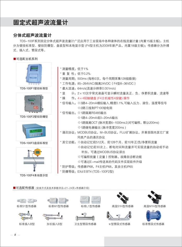 超聲波流量計 一、概 述 AK-TDS-100F型固定式超聲波流量計利用了低電壓、多脈沖時差原理,采用高精度和超穩(wěn)定的雙平衡信號差分發(fā)射、差分接收數(shù)字檢測技術(shù)來測量順流和逆流方向的聲波傳輸時