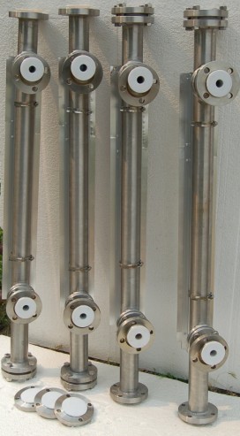 UDZ-4型磁翻板液位計是以浮子內(nèi)磁鋼驅(qū)動雙色磁性片的翻轉(zhuǎn)來指示液位的一種儀表。主體內(nèi)磁浮子隨液位的升降而上下運動,同時驅(qū)使主體外指示器內(nèi)的雙色磁性翻轉(zhuǎn),有液位時轉(zhuǎn)示紅色、無液位時轉(zhuǎn)示黑色。紅色和黑色色帶間的界線即代表液位高度。在指示器左側(cè)配有醒目的刻度標(biāo)尺,從而使液位的指示顯得更加清晰。此款液位計的材質(zhì)為304內(nèi)襯四氟材質(zhì)從而可以耐腐蝕性,適合用于具有腐蝕性的液體不銹鋼內(nèi)襯四氟防腐磁翻板液位計的采用不銹鋼本體內(nèi)襯聚丙烯(PP)和聚四氟乙烯(PTFE)工藝,有很高的結(jié)構(gòu)強度和耐腐蝕性,可適用于鹽酸等酸性液體、堿性液體和有機溶劑。但不適合濃縮硝酸、含氯溶劑、芳香劑、脂肪族等介質(zhì)液體的測量。側(cè)裝式內(nèi)襯防腐磁翻板液位計有不銹鋼主體內(nèi)襯聚四氟乙烯(PTFE)和不銹鋼內(nèi)襯聚丙烯(PP)兩種,適合腐蝕性介質(zhì)的測量。