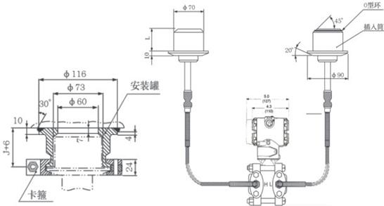 ⑤ DP型雙法蘭液位變送器兩側(cè)的毛細(xì)管zui大長度為7.5米,兩側(cè)長度差為4.5米。