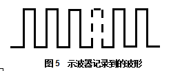 筆者在檢查了各臺儀表之后,發(fā)現(xiàn)各臺儀表均正常。于是請渦街流量計制造廠上門服務(wù),經(jīng)檢查發(fā)現(xiàn)這臺DN350的渦街流量計有“漏脈沖”現(xiàn)象存在,在正常的流量范圍內(nèi),記錄到數(shù)次如圖5所示的輸出波形。
